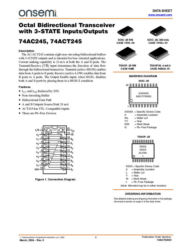 74ACT245 Octal Bidirectional Transceiver with 3-STATE Inputs/ Outputs