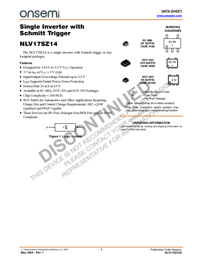 NLV17SZ14 Single Inverter with Schmitt Trigger Input