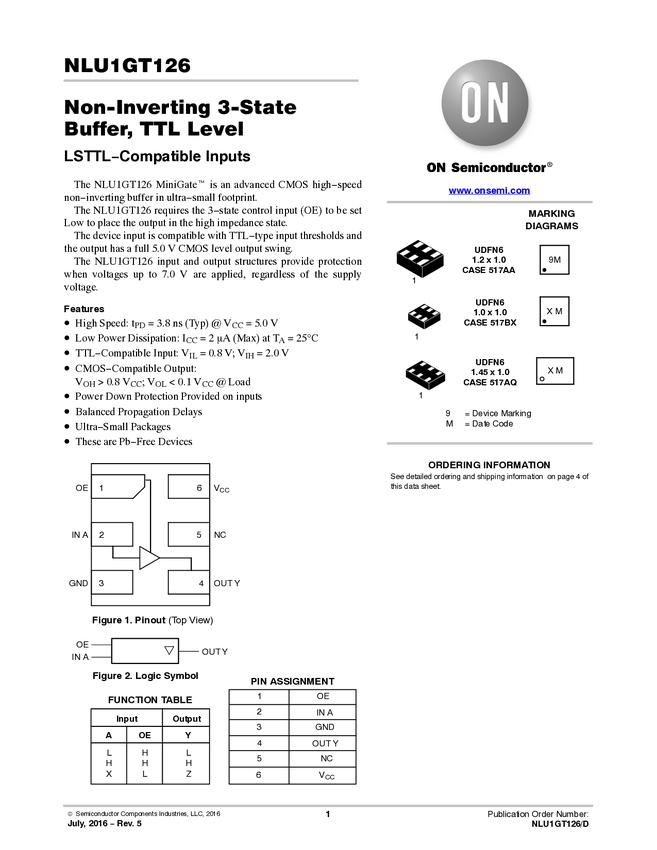 NLU1GT126 Single Non-Inverting Buffer, TTL-Level