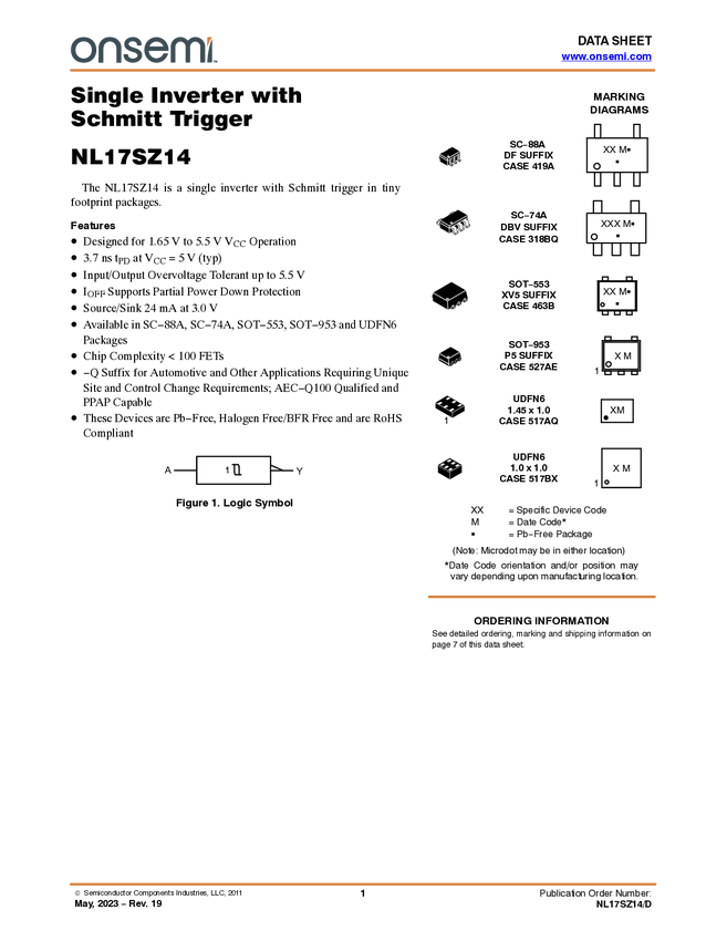 NL17SZ14 Single Inverter with Schmitt Trigger Input