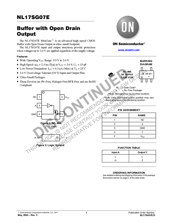 NL17SG07E Buffer with Open Drain Outputs, Low Voltage