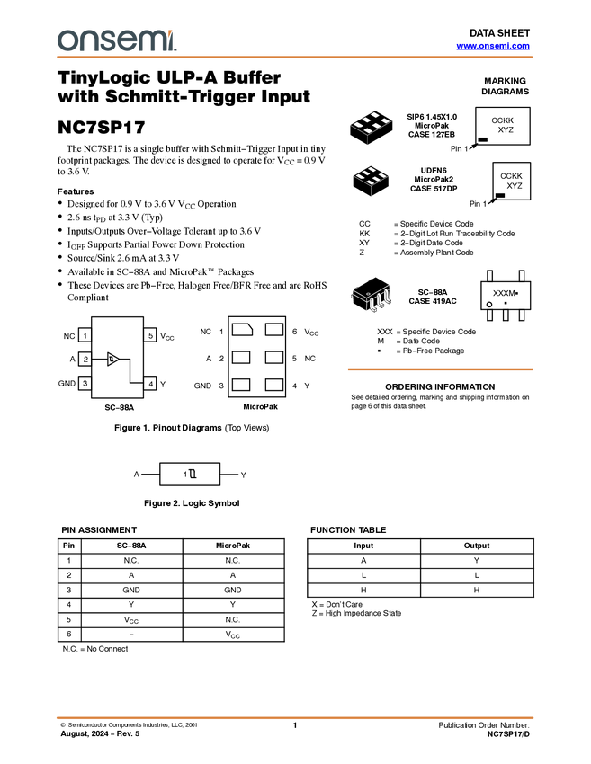 NC7SP17 TinyLogic ULP Single Buffer with Schmitt Trigger Input