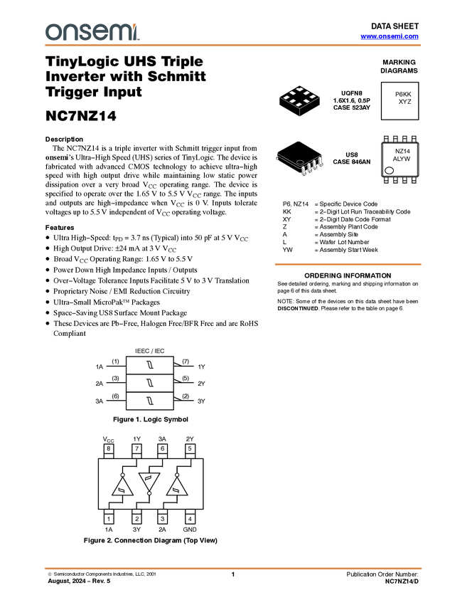 NC7NZ14 TinyLogic UHS Inverter with Schmitt Trigger Input