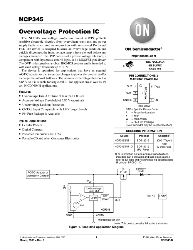 NCP345 Overvoltage Protection Circuit (6.85 V Threshold)