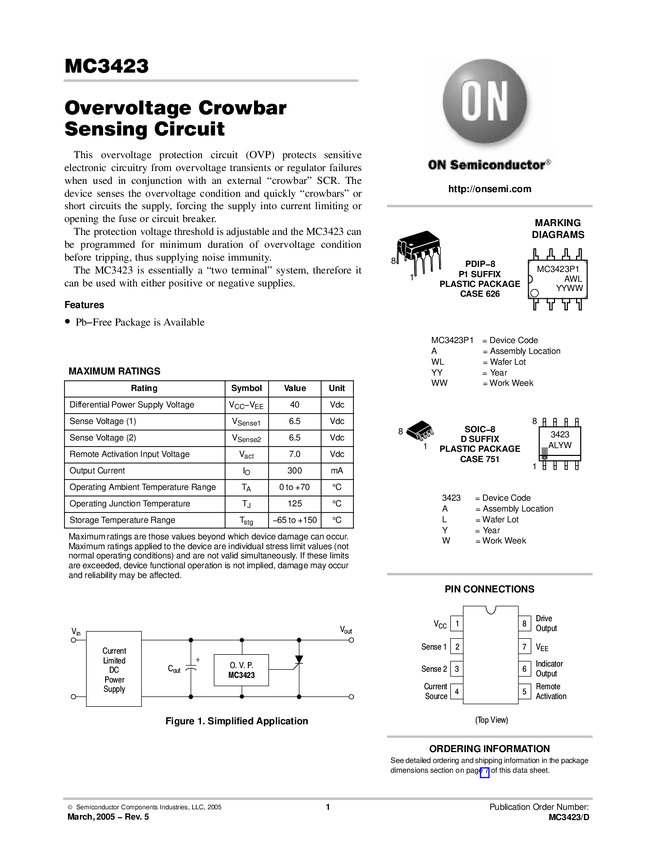 MC3423 Overvoltage Crowbar Sensing Circuit with Adjustable Threshold Voltage