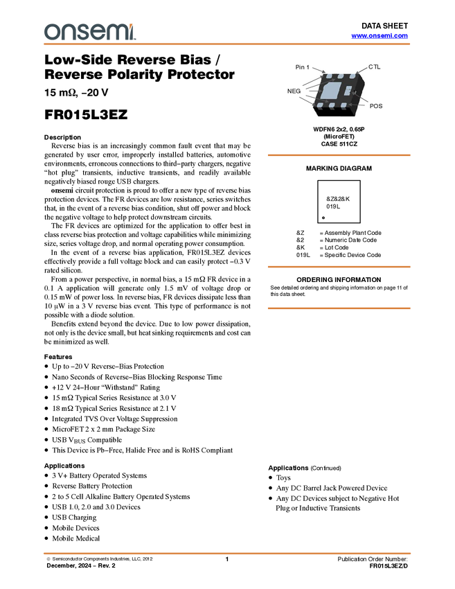 FR015L3EZ Low-Side Reverse Bias / Reverse Polarity Protector