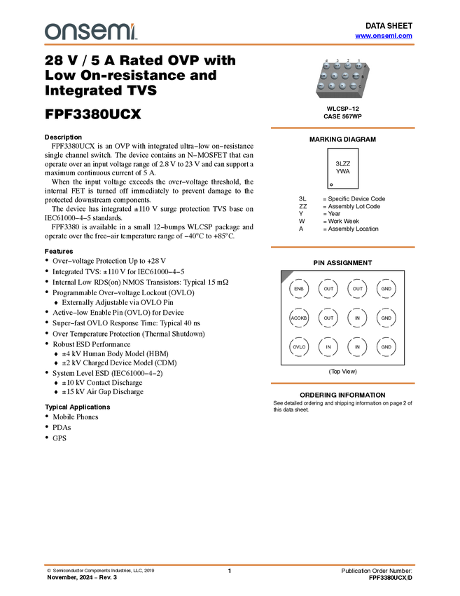 FPF3380 Low Rdson Over-Voltage Protection Load Switch