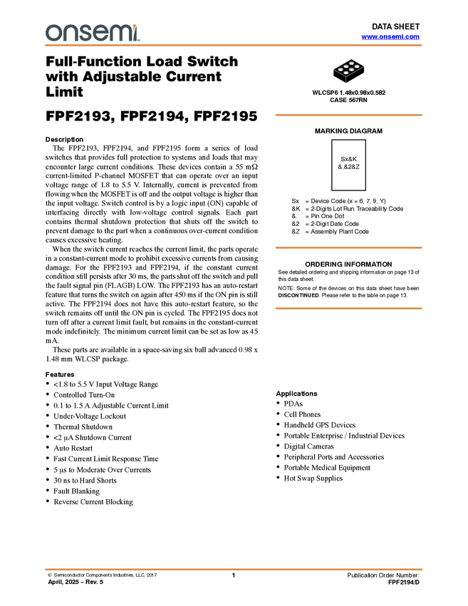 FPF2195 Full Function Load Switch with Adjustable Current Limit