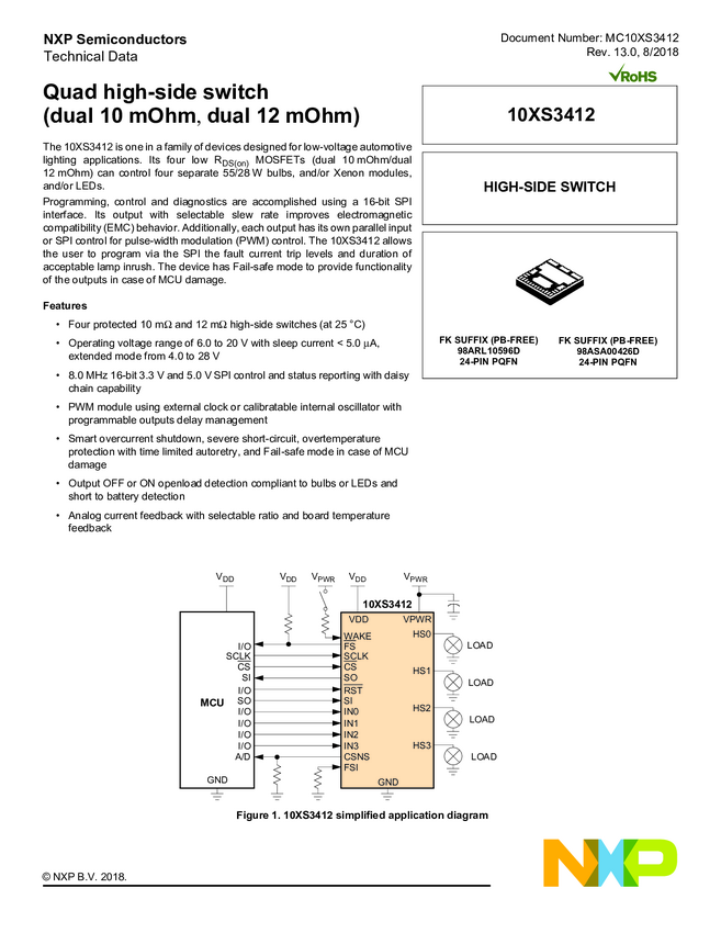 Evaluation Kit - MC10XS3412, Quad High Side Switch (Dual 10 mOhms, Dual 12 mOhm)