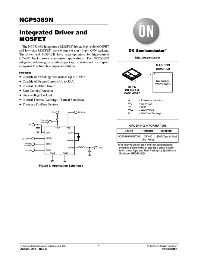 NCP5369N Integrated Driver with High-Side and Low-Side MOSFETs