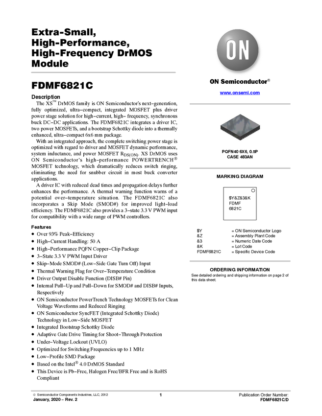 FDMF6821C Extra-Small, High-Performance, High-Frequency DrMOS Module