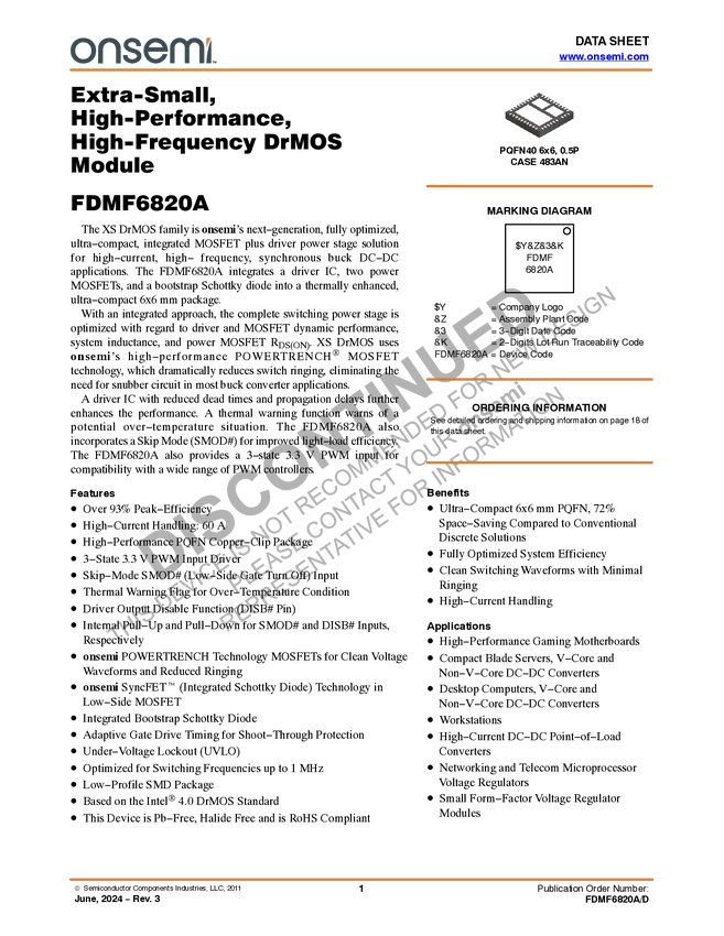 FDMF6820A Extra-Small, High-Performance, High-Frequency DrMOS Module