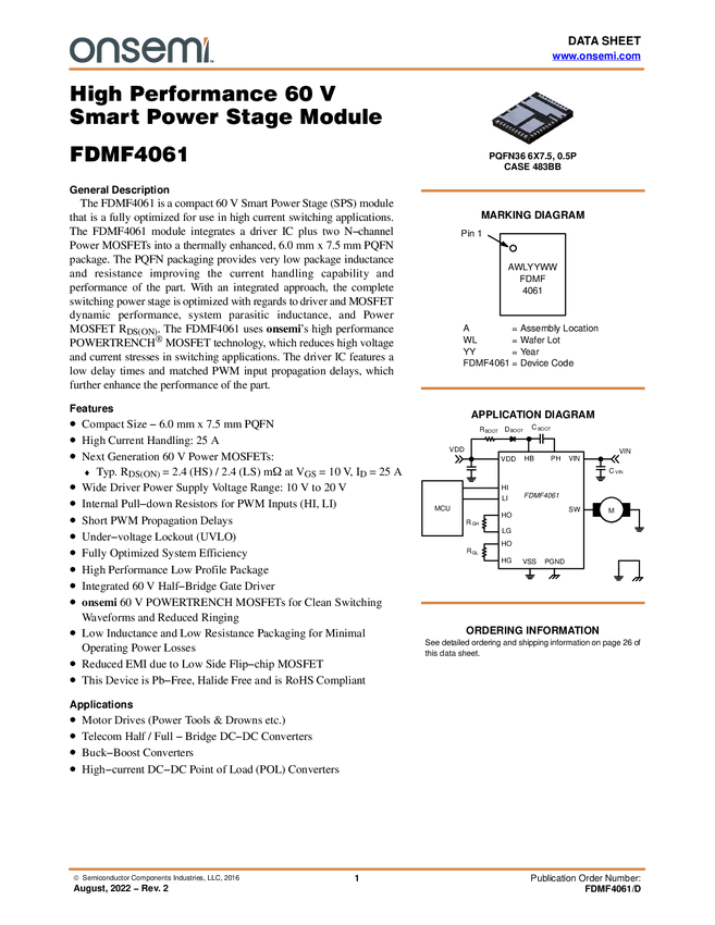 FDMF4061 High Performance 60V Smart Power Stage Module