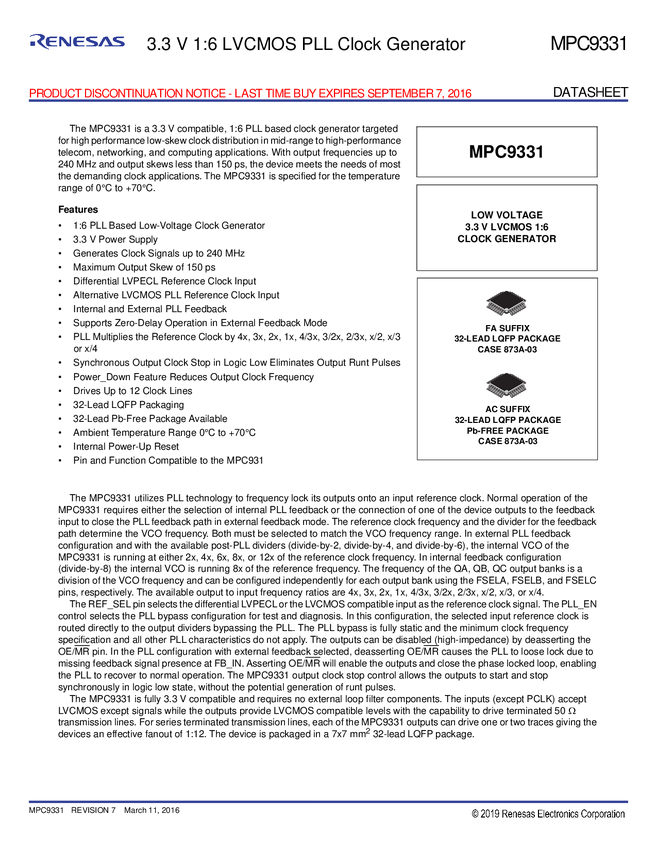 MPC9331AC 1:6 LVCMOS PLL Clock Generator