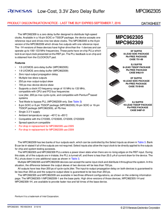MPC962305, MPC962305EF-1H, MPC962305EJ-1H, MPC962305EJ-1HR2