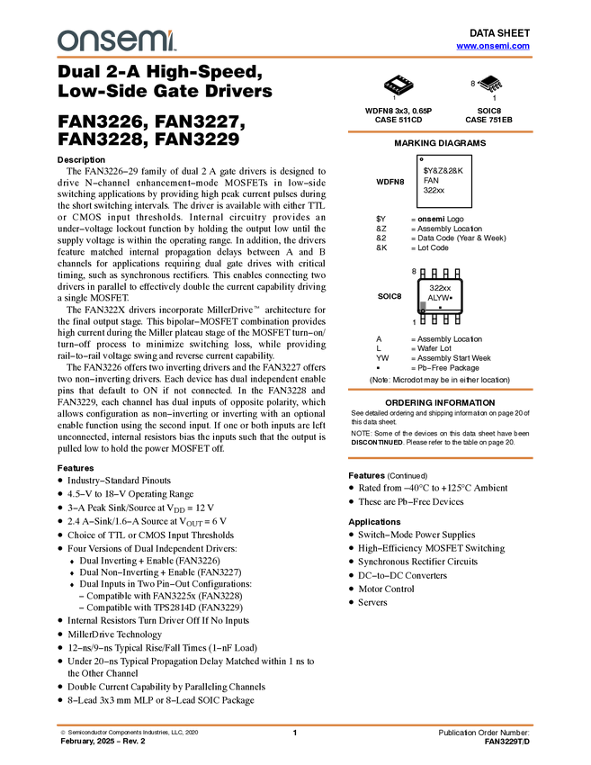 FAN3229T, FAN3229C, FAN3227C, FAN3226T, FAN3226C