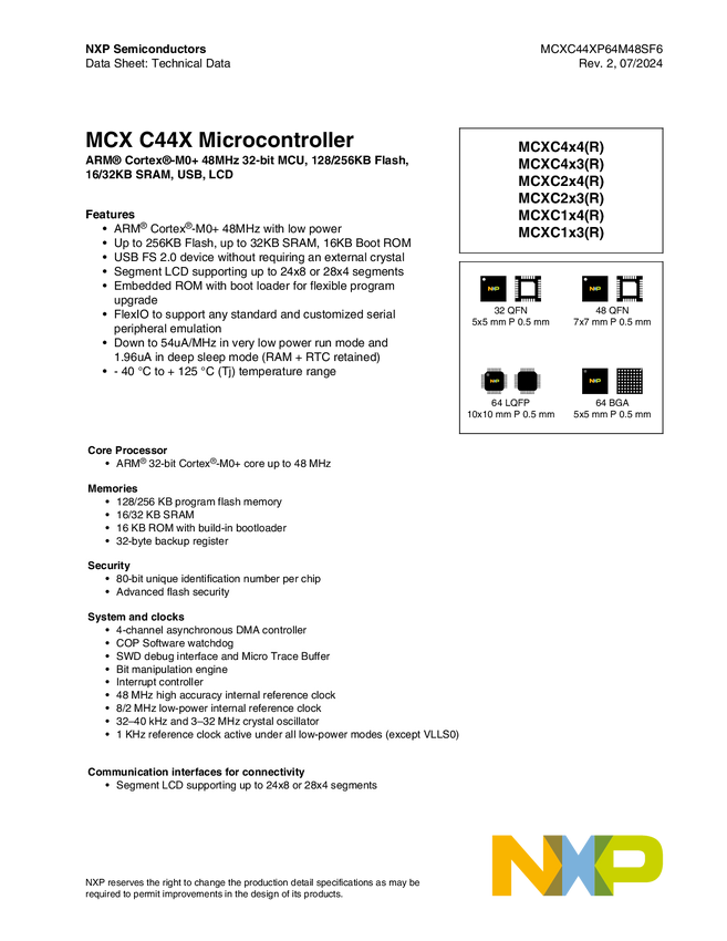 MCX C14x/24x/44x MCUs with Arm® Cortex® M0+, Entry level MCUs with USB, Segment LCD and Classical Peripherals