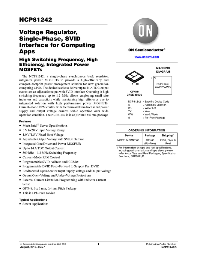 NCP81242 Single−Phase Synchronous Buck Regulator with Integrated Power MOSFETs for V...
