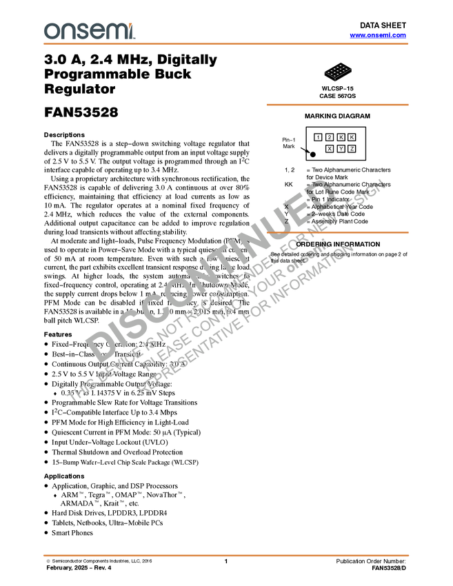 FAN53528 3.0 A, 2.4 MHz, Digitally Programmable Buck Regulator