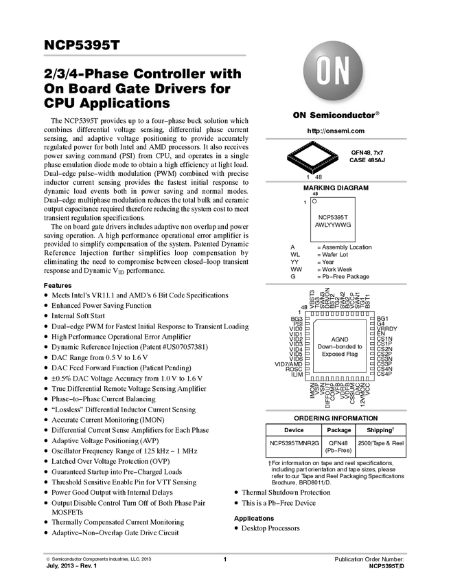 NCP5395T 2/3/4-Phase Controller with Gate Drivers