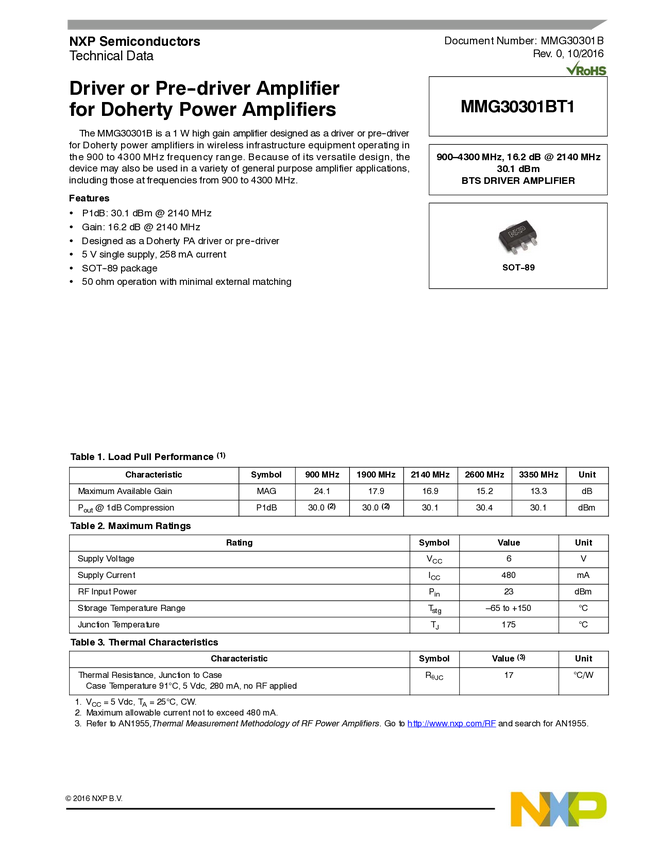MMG30301B HBT GPA/LNA, 450-4000 MHz, 30 dB, 17 dBm
