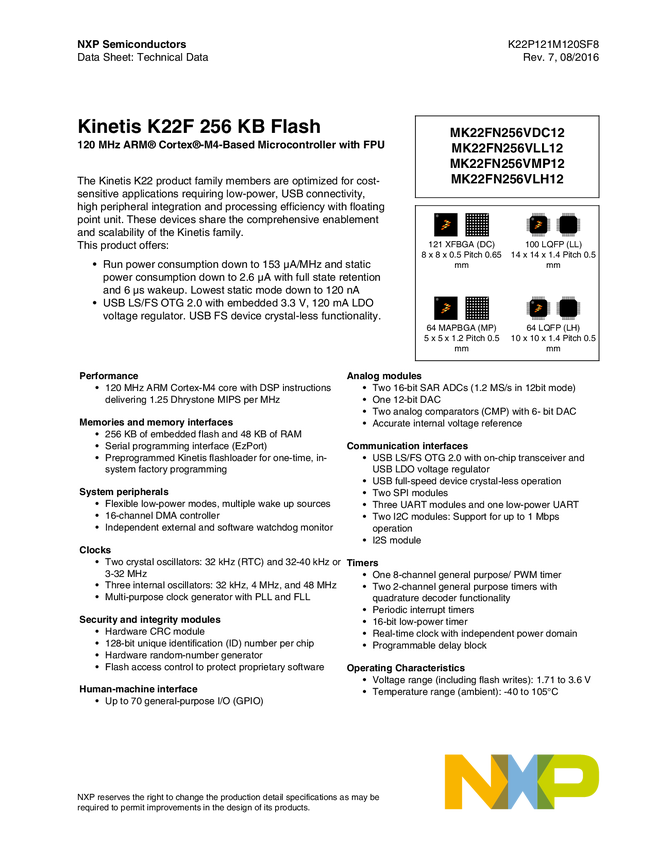 MK22FN256VLH12, MK22FN256VLL12, MK22FN256VMP12