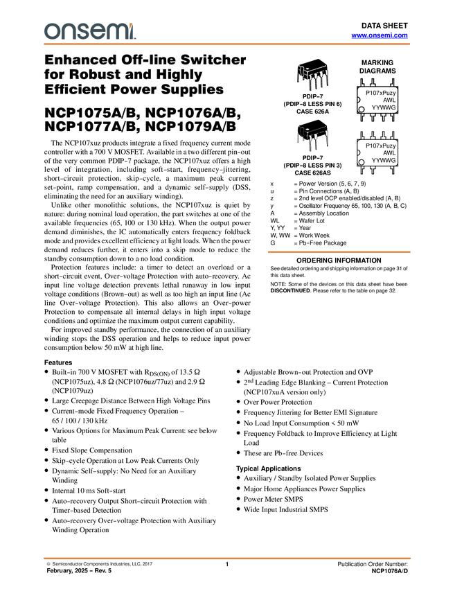 NCP1077A, NCP1076A, NCP1075A