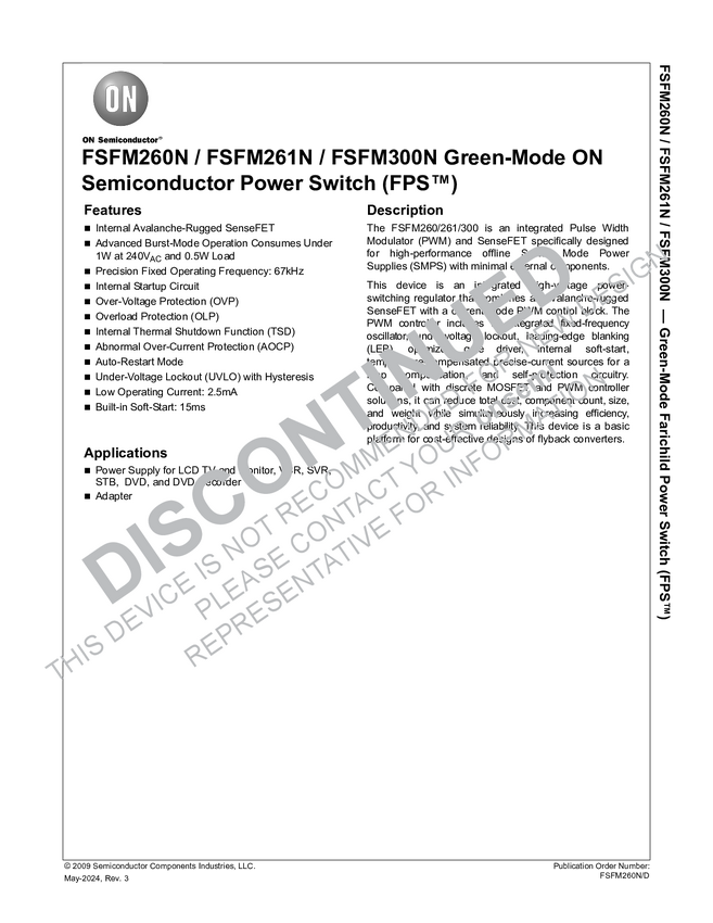 FSFM300 650V Integrated Power Switch with Abnormal OCP for 30Watt offline flyback c...