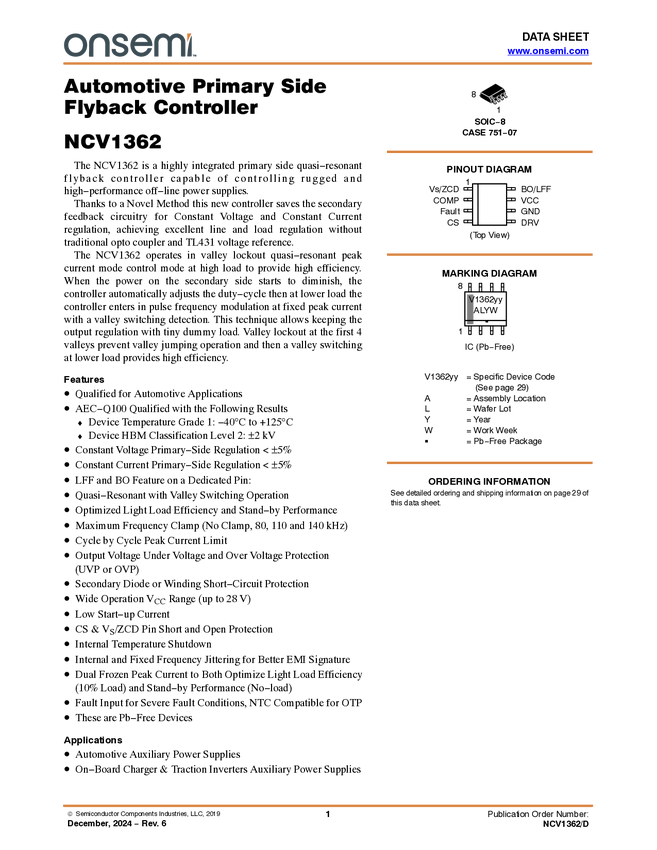 NCV1362 Automotive Primary Side PWM Controller for Low Power Offline SMPS