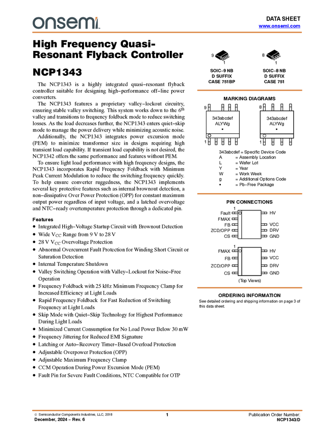 NCP1343 Quasi-Resonant Flyback Controller with Power Excursion Mode