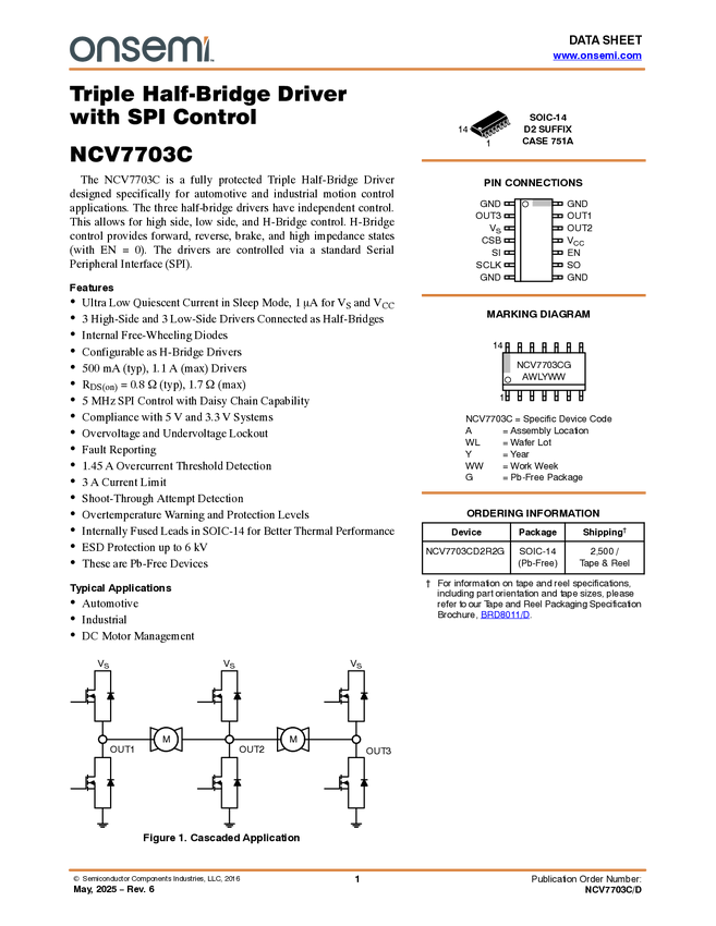 NCV7703C Triple Half-Bridge Driver for automotive side-view mirror control.