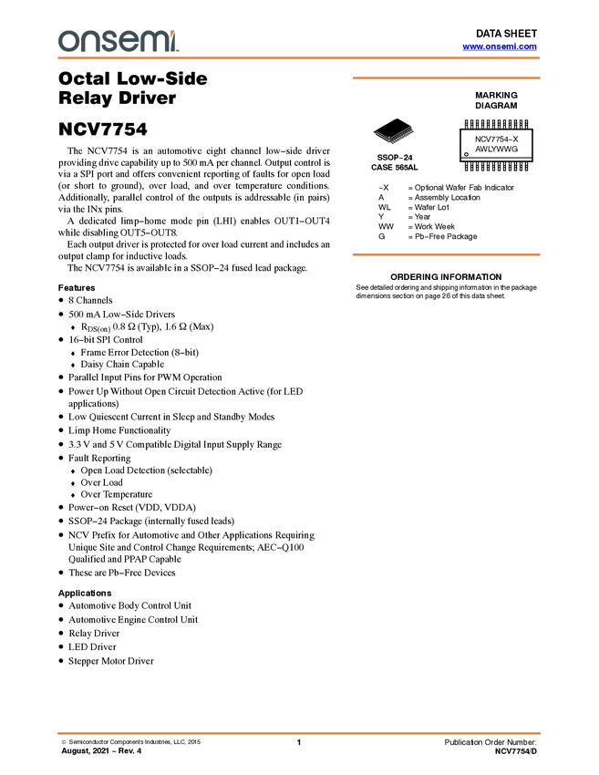 NCV7754 Octal Low-side Relay Driver, Eight Channel