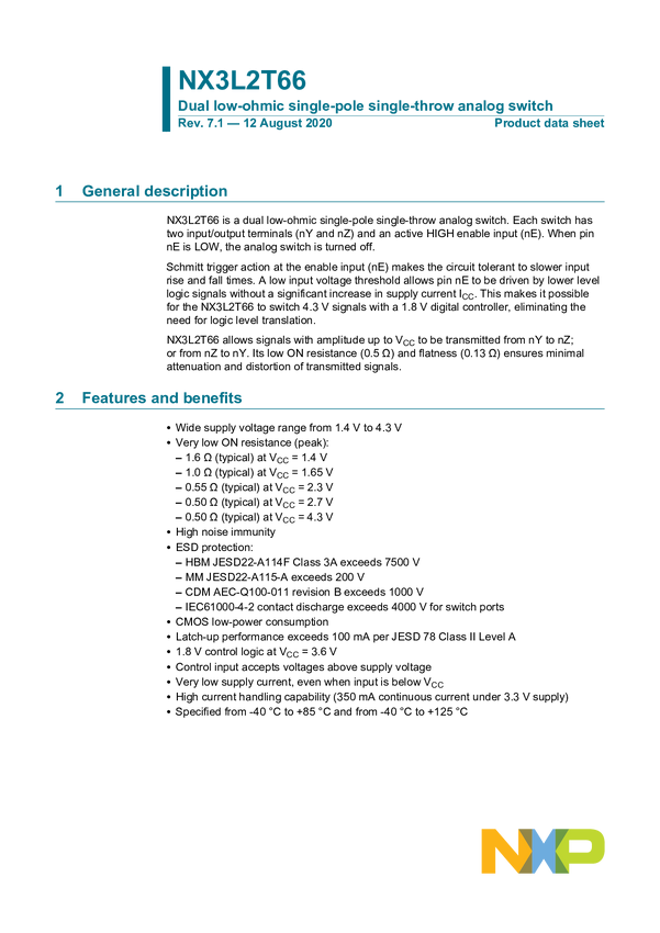 NX3L2T66GT Dual low-ohmic single-pole single-throw analog switch