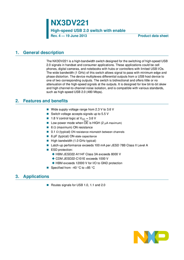 NX3DV221GM High-Speed USB 2.0 Switch with Enable