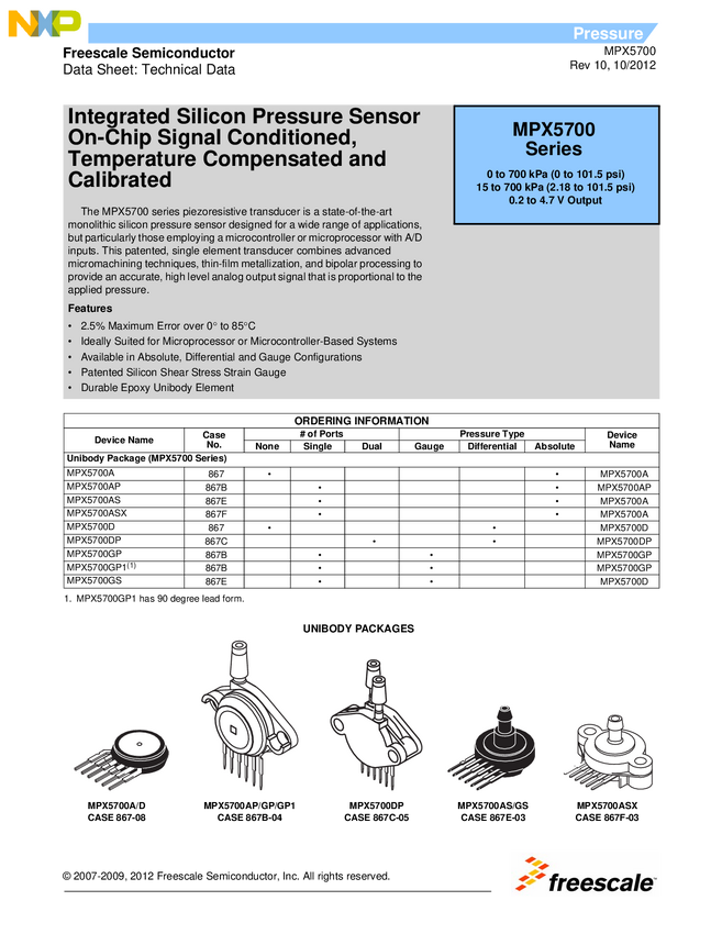MPX5700D, MPX5700DP, MPX5700ASX, MPX5700GP1, MPX5700GP