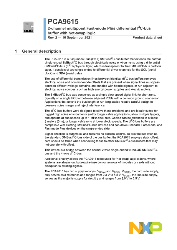 PCA9615DP Dual Supply 2-channel multipoint Fast-mode Plus differential I2C-bus buffer...