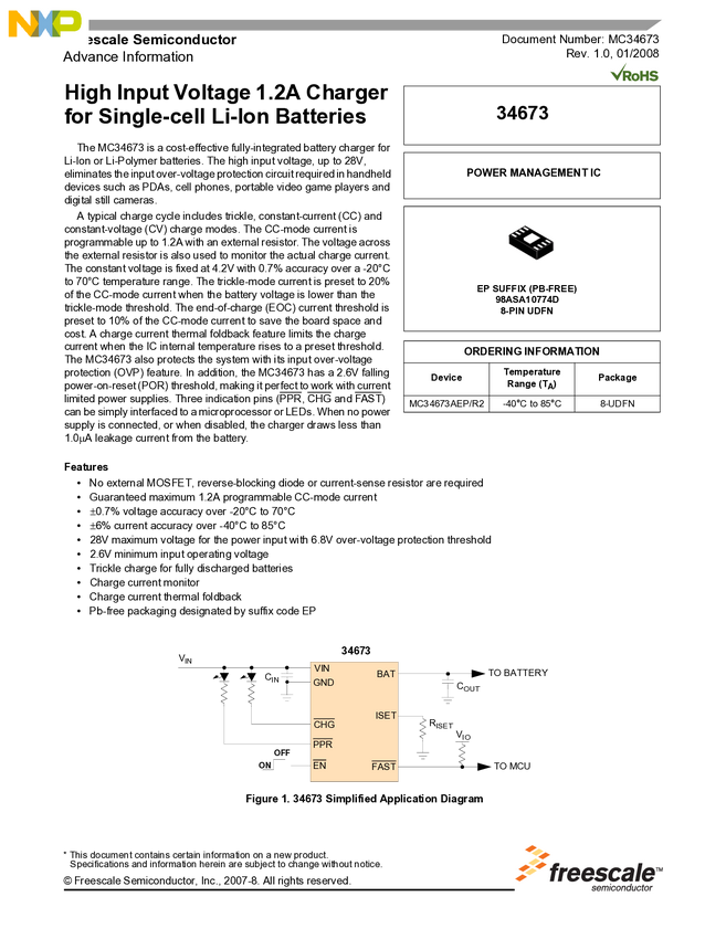 Evaluation Kit - MC34673, 1.2 A High-Input-Voltage Charger for 1-Cell Li-Ion/Li-Polymer Batteries