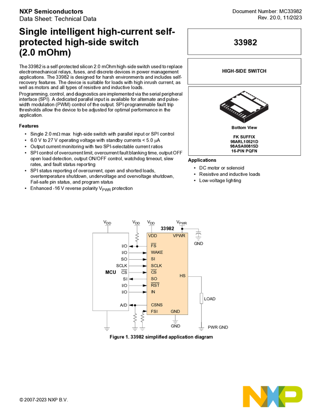 Evaluation Kit - MC33982, Single 2 mOhm Intelligent High-current Self-protected High Side Switch