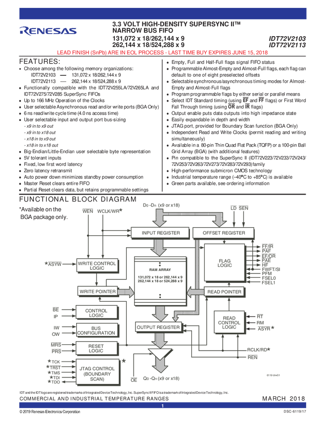 256K x 18 / 512K x 9 SuperSync II FIFO, 3.3V