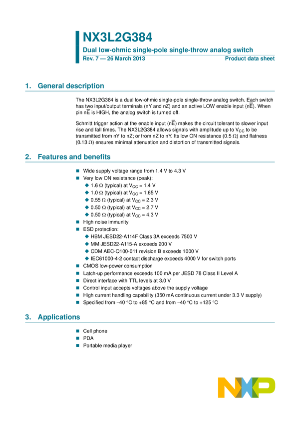 NX3L2G384GM Dual low-ohmic single-pole single-throw analog switch