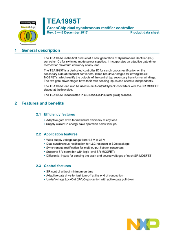 TEA1995T GreenChip Dual SR Controller add-on board for resonant and multi-output fly...