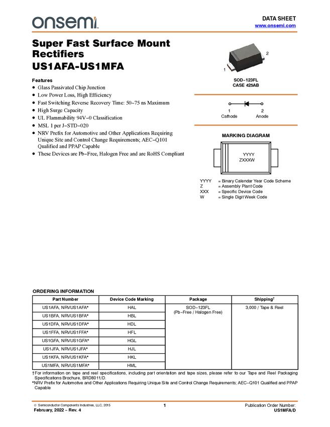 US1AFA Super Fast Surface Mount Rectifiers