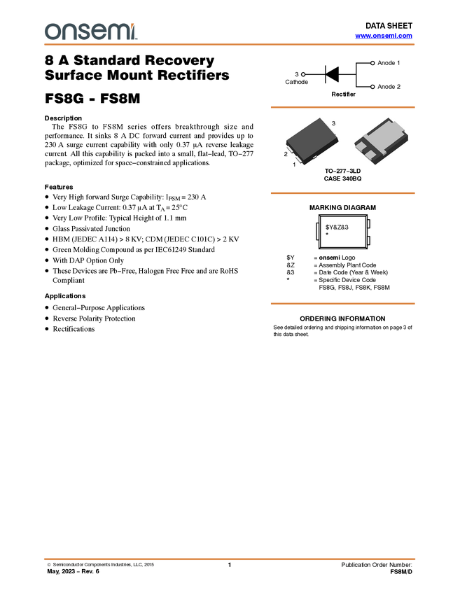 FS8M 8 A Standard Recovery Surface Mount Rectifiers