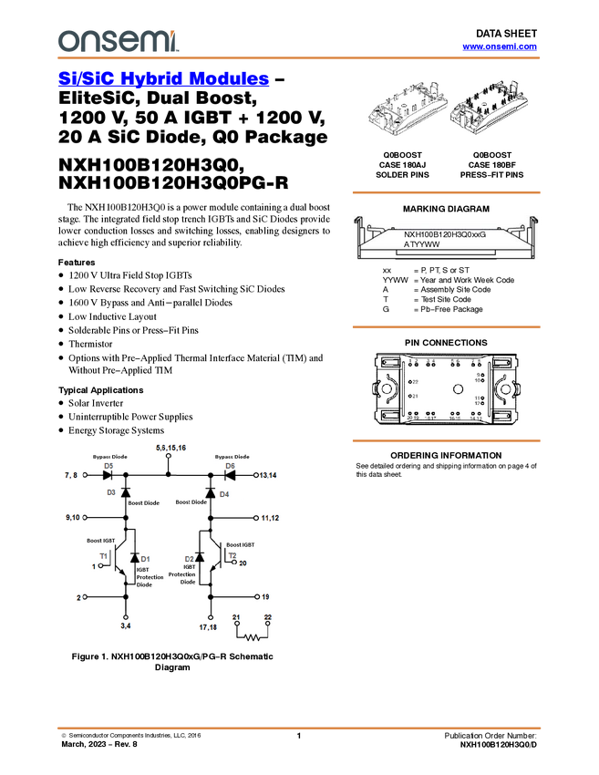 NXH100B120H3Q0 Power Integrated Module, Dual Boost, 1200 V, 50 A IGBT + 1200 V, 20 A SiC D...