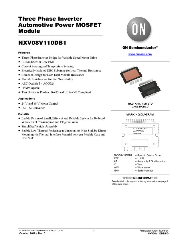 NXV08V110DB1 3-Phase Inverter Automotive Power Module, APM19