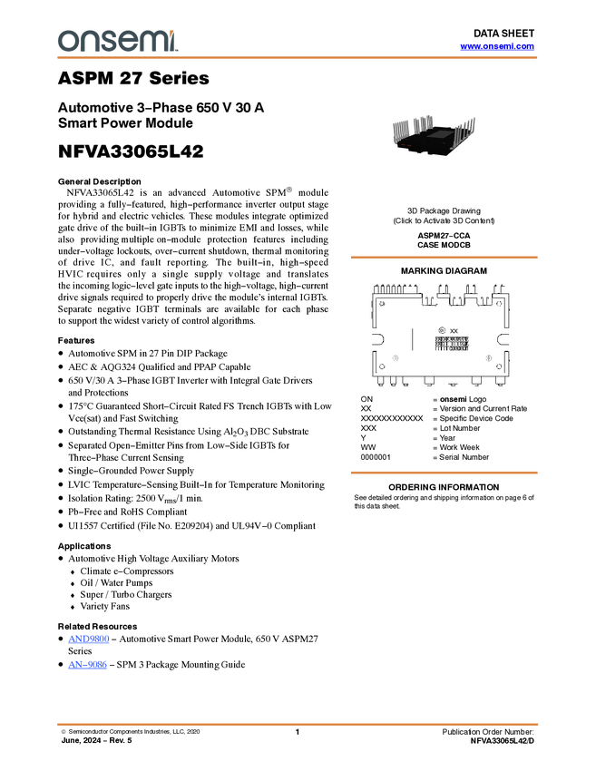 NFVA33065L42 Intelligent Power Module (IPM), ASPM27-V3, AEC-Q & AQG324, Automotive, Inve...