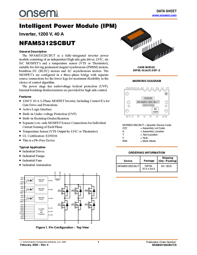 NFAM5312SCBUT Intelligent Power Module (IPM), Inverter 1200V 40A