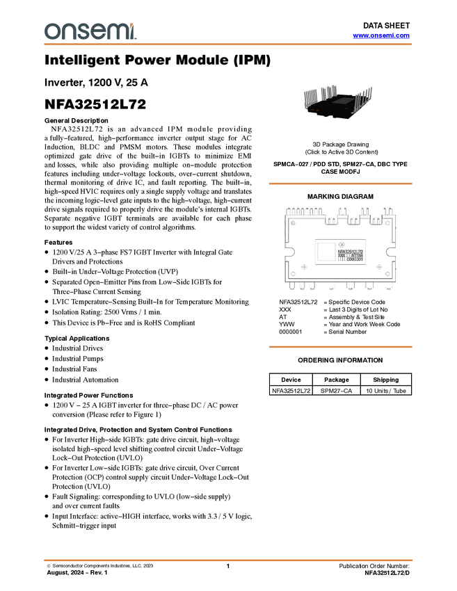 NFA32512L72 Intelligent Power Module, 1200V, 25A.