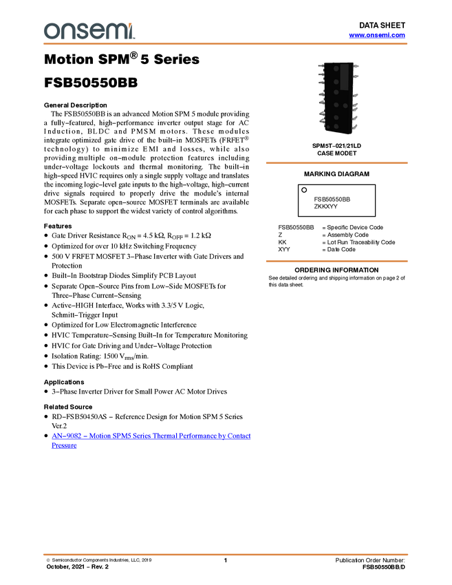 FSB50550BB Intelligent Power Module, 500V, 3A, Double DIP
