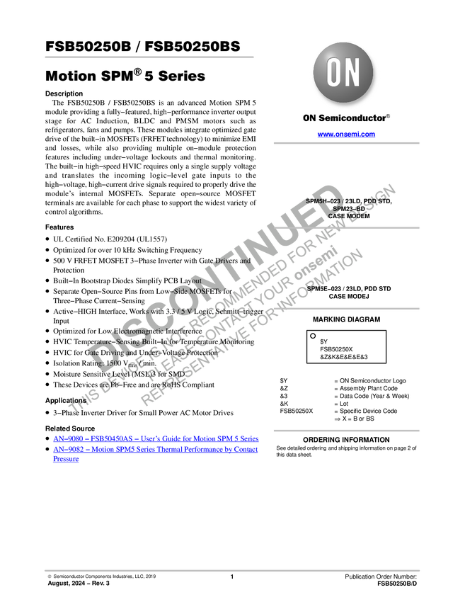 FSB50250BS Intelligent Power Module, 500V, 2A